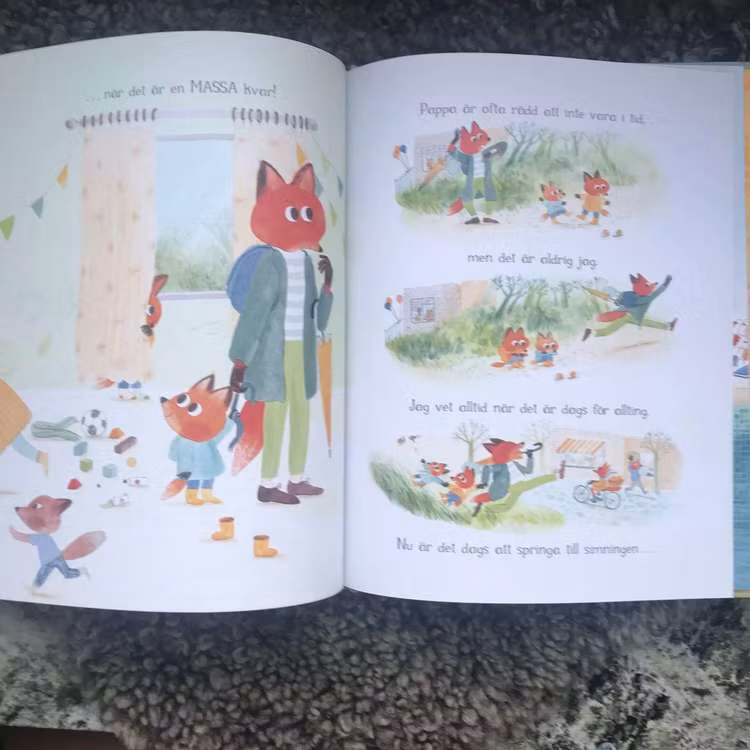 Jag gillar den här boken! Författarens lyckas verkligen få till barnets perspektiv i den här berättelsen och det är så bra. Det är en charmig och rolig bok som jag blir glad av att läsa. Boken är väldigt bra översatt och läsningen har ett behagligt flyt. De små rävarna är sagolikt söta och det är omöjligt att inte charmas av dem. Texten och de fina illustrationerna ihop gör boken till en riktig liten pärla i barnboksdjungeln. Boken passar barn från ca 3 år och uppåt!"
