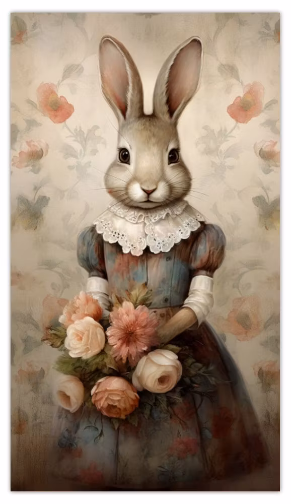 Otroligt vacker magnet med den vackra kaninen som håller i de vackra blommorna.