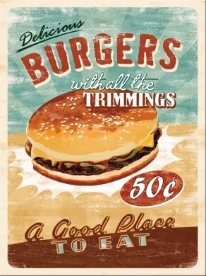Här finns flera olika magneter som för tankarna till en klassisk Diner i USA.