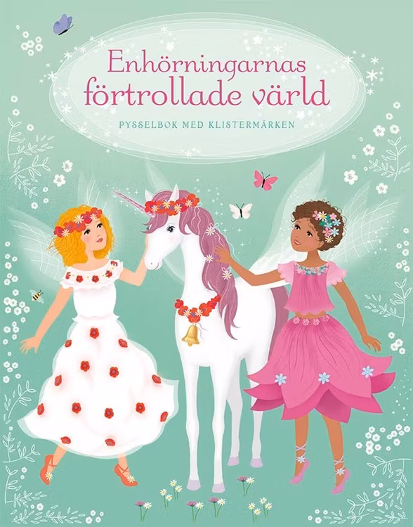 I den här förtrollande boken får du kliva in i enhörningarnas förtrollade värld. Smycka de magiska enhörningarna och klä på älvorna vackra klänningar. Här finns massor av vackra bakgrunder att dekorera med de medföljande klistermärkena.
