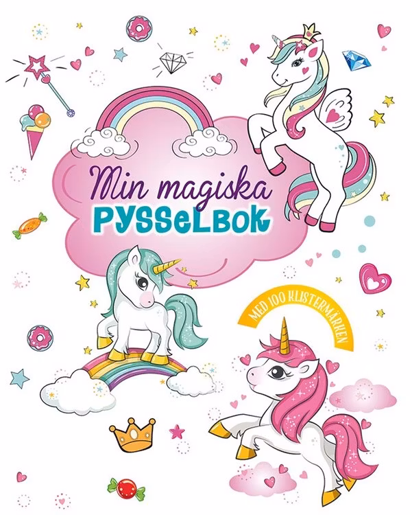 En bok full med spännande pyssel, bilder att färglägga och gulliga klistermärken!