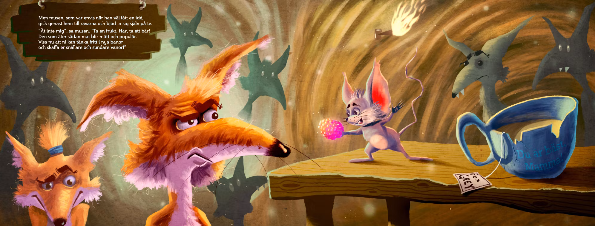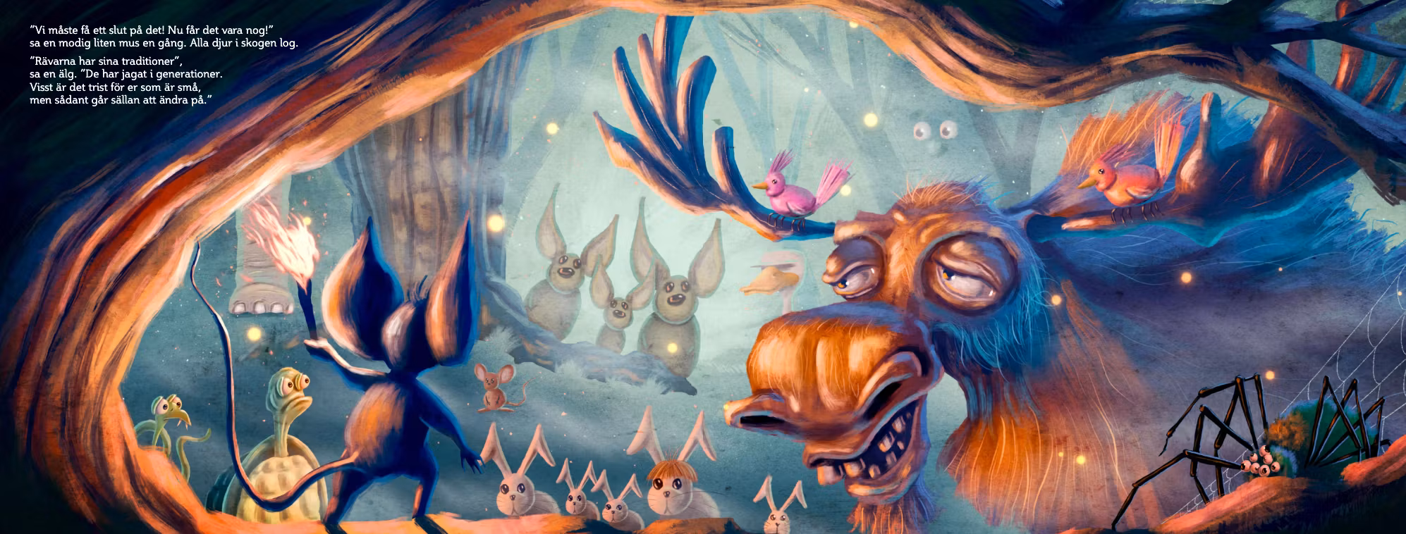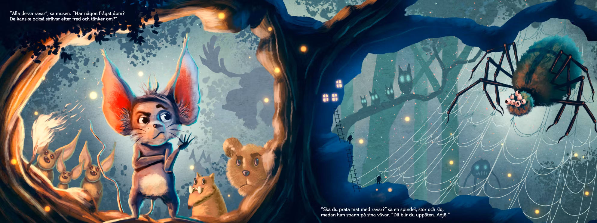 sa en modig liten mus en dag och alla djuren log.