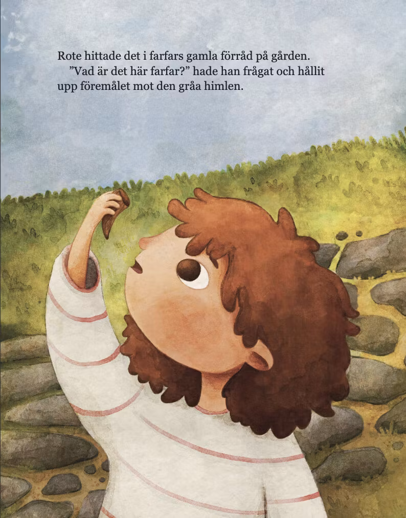 Mamman tycker: Rote tappar bort sig och hittar inte rätt stig tillbaka till farfars hus. När han fastnar med foten i en grop blir det ännu läskigare. Tack och lov har han hittat ett litet horn hos farfar och det gör att att han kan prata med djur. Han får hjälp av en räv, en ekorre och ett rådjur för att komma loss och för att hitta tillbaka. Det är en bok om att inte känna igen sig, att känna sig ensam och rädd, men också att hitta tillbaka och hitta vänner. Att saker inte är så läskiga som de först verkar, bara för att det blir nytt och lite jobbigt. Vi tycker väldigt mycket om Nora Segerdahls illustrationsstil, och den här boken är inget undantag. Det blir liksom lite mer mytiskt och finstämt till Kim Vizins Kjellbergs berättelse. Sedan tycker jag att den sociala stelheten som blir mellan Rote och ekorren medan de väntar tillsammans är fantastiskt humoristisk och igenkännande."