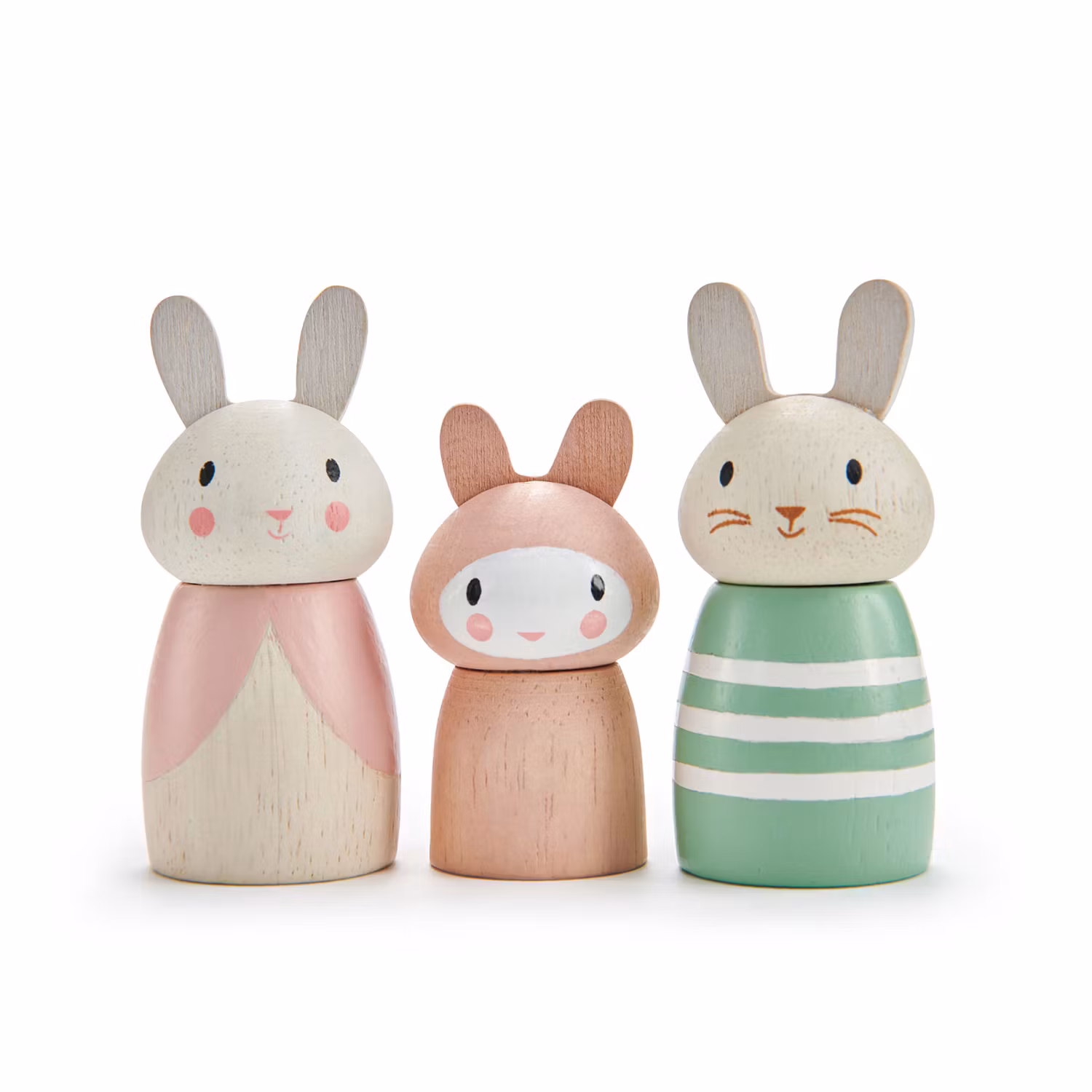 Lilla kaninfamiljen är rysligt söt och redo att leka. Enkelt och rent formgivna med fint målade ansikten. Det står att de heter Dotty, Benny och Pip.