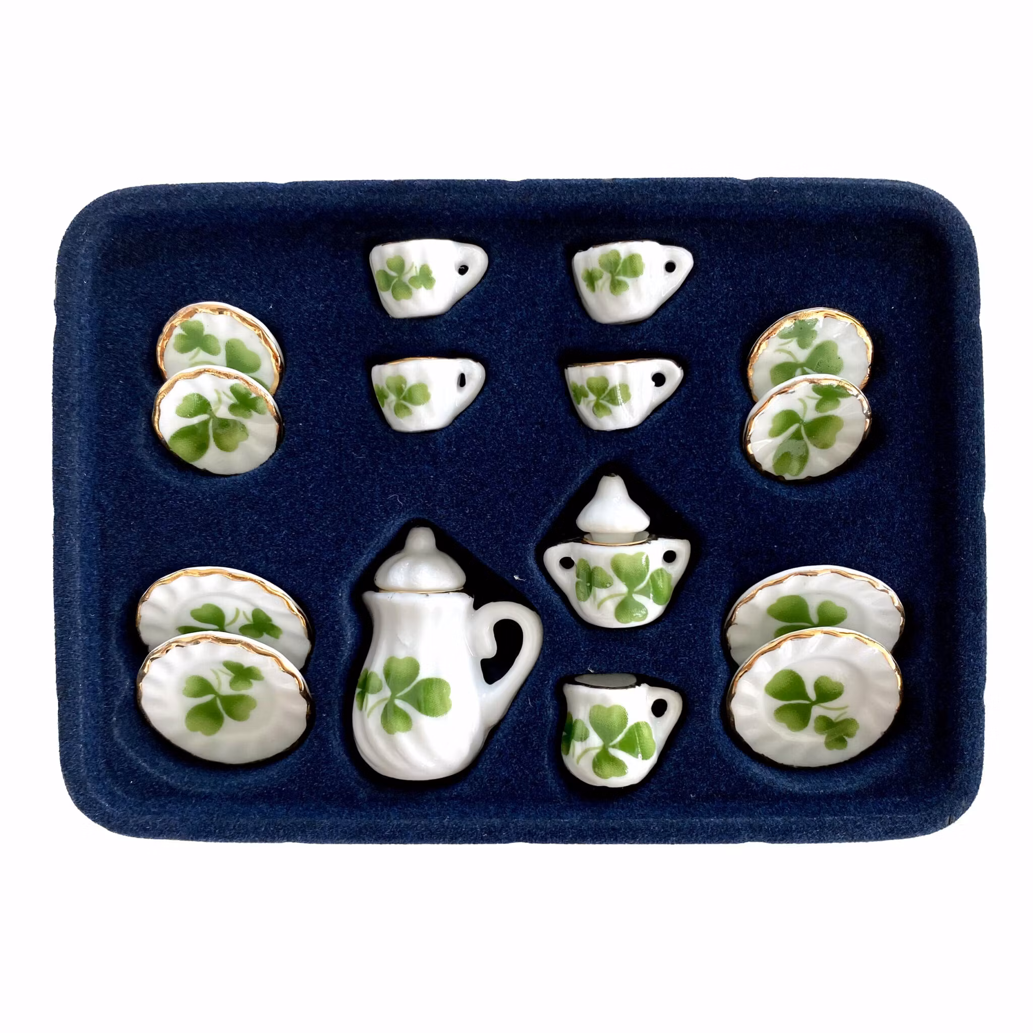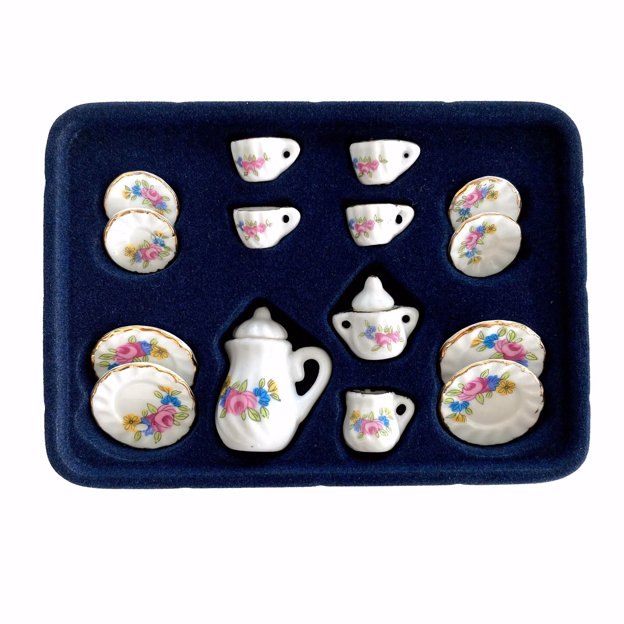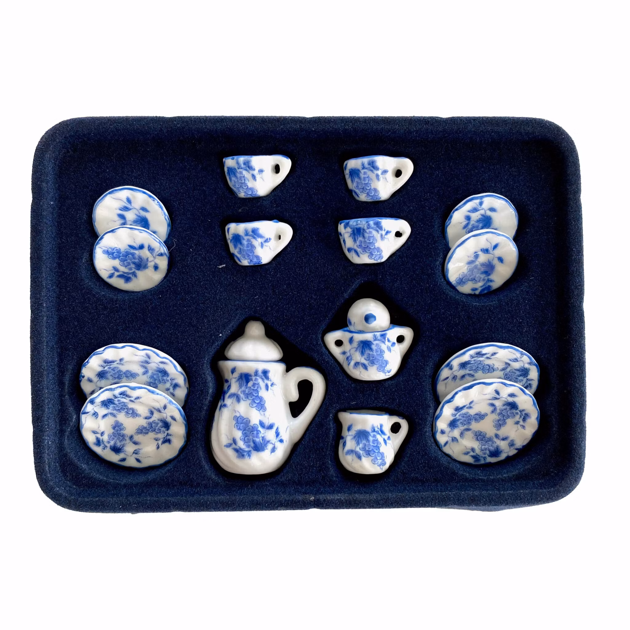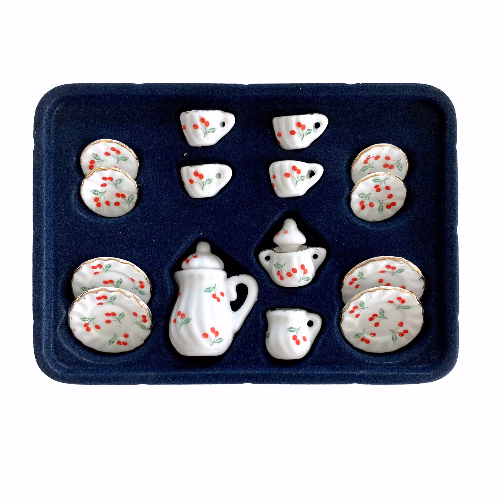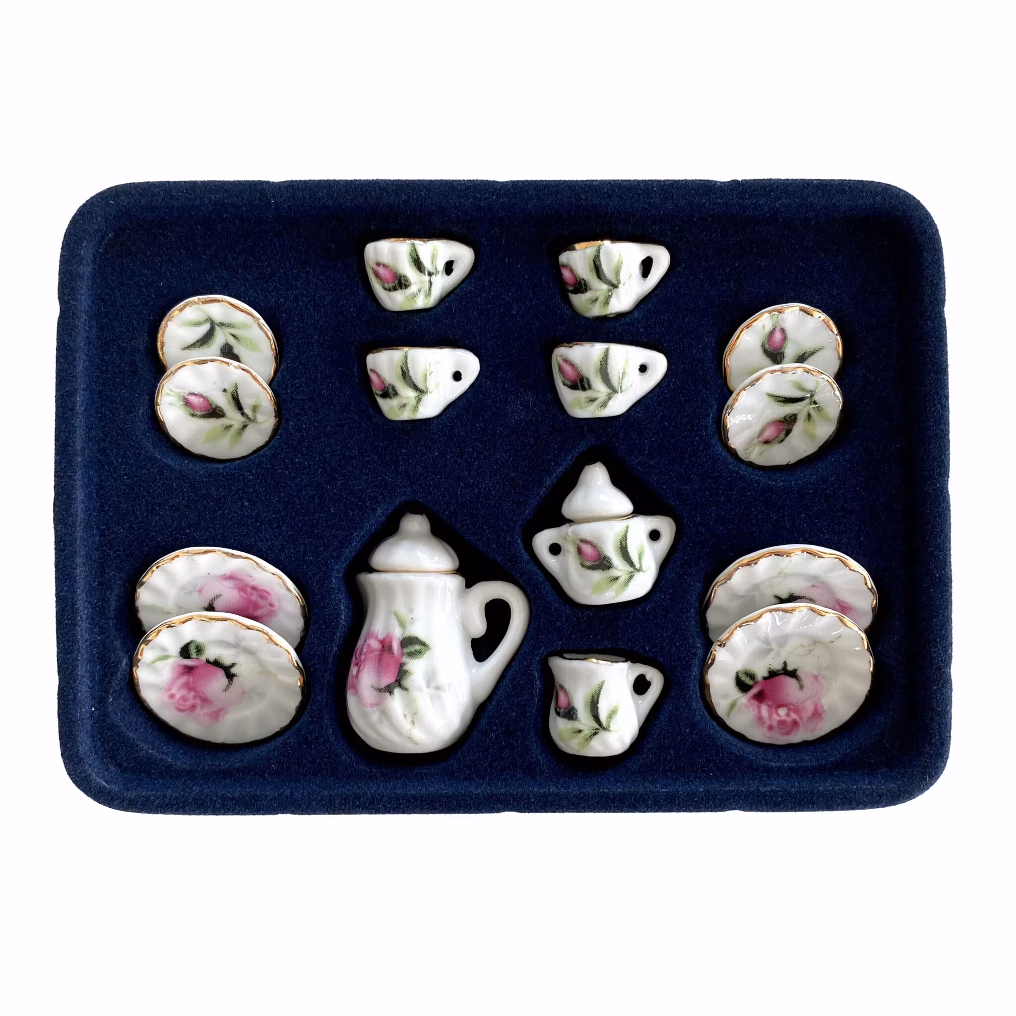 Här finns fina små serviser med 15 delar i porslin. Perfekt till ett dockhus eller till små dockor, eller bara som fin prydnad på en byrå.