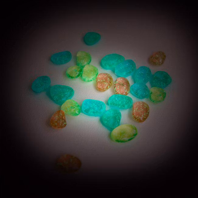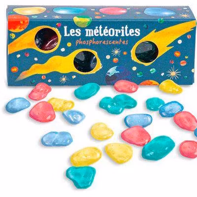 En liten ask med självlysande stenar i olika färger som vi kallar meteorit-stenar. Snyggt på dagen och häftigt när mörkret faller eftersom de lyser i mörkret.