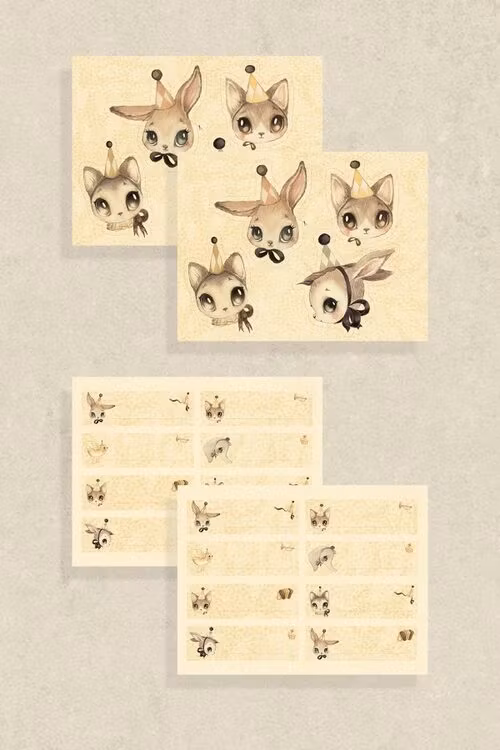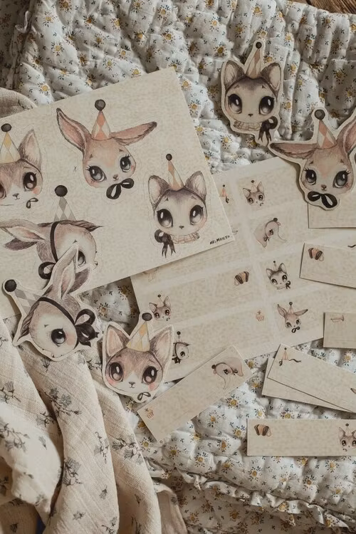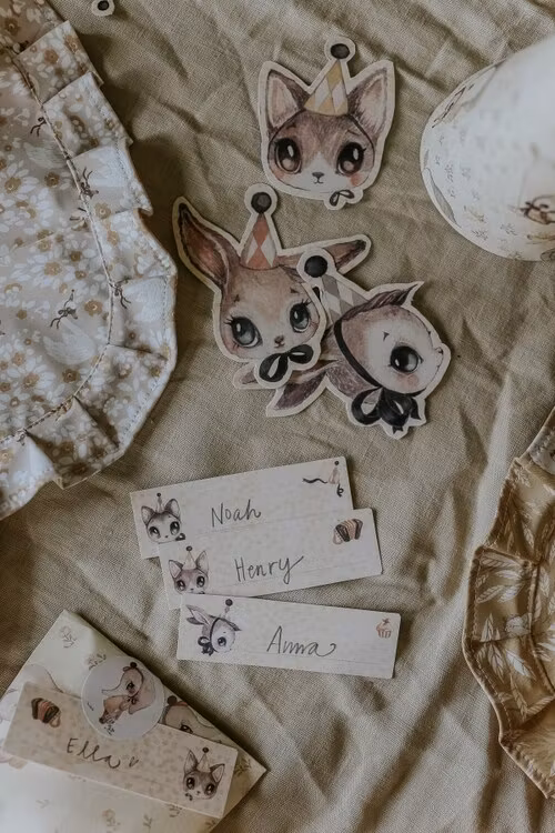 8 dubbelsidiga partykompisar och 16 dubbelsidiga placeringkort. Klipp ut figurerna och var kreativ!