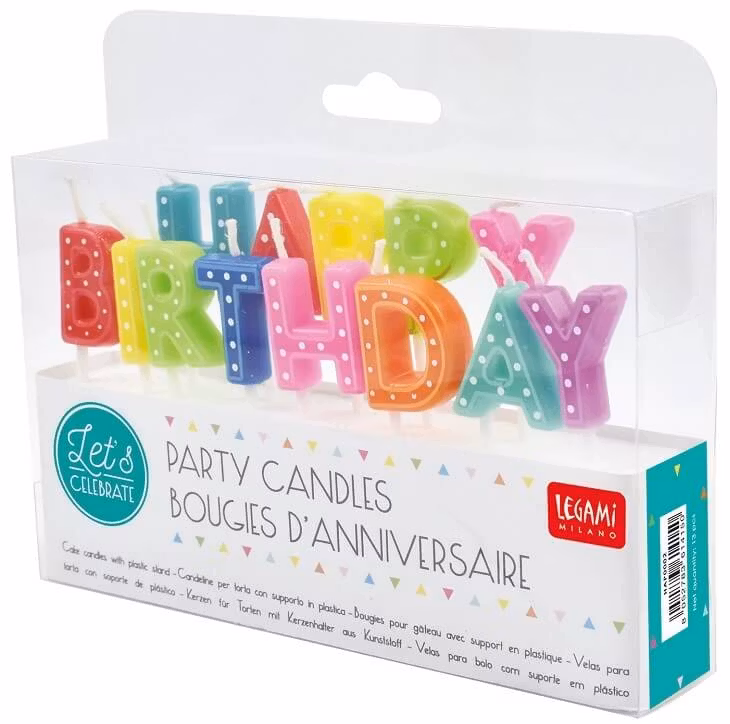 Tårtljus - Happy Birthday 59 kr 13 färgglada tårtljus som tillsammans bildar orden "Happy Birthday". Lägg i korgen Dela 13 färgglada tårtljus som tillsammans bildar orden "Happy Birthday".