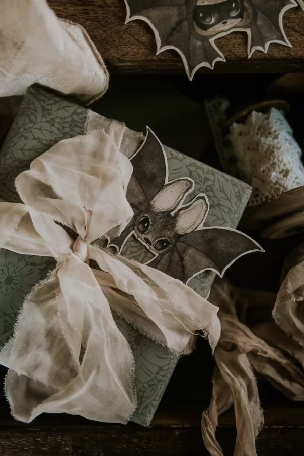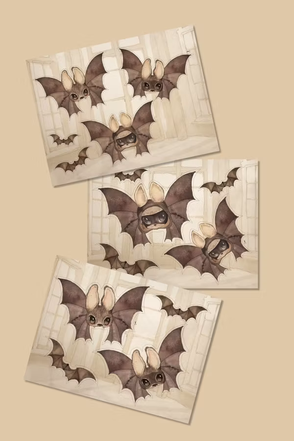 Här finns ett DIY-kit med papperspyssel. Det är 3 ark med dubbelsidiga fladdermöss.
