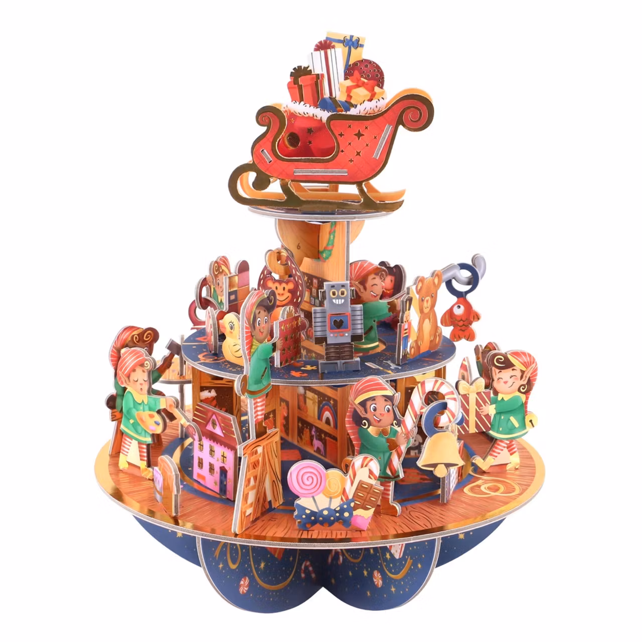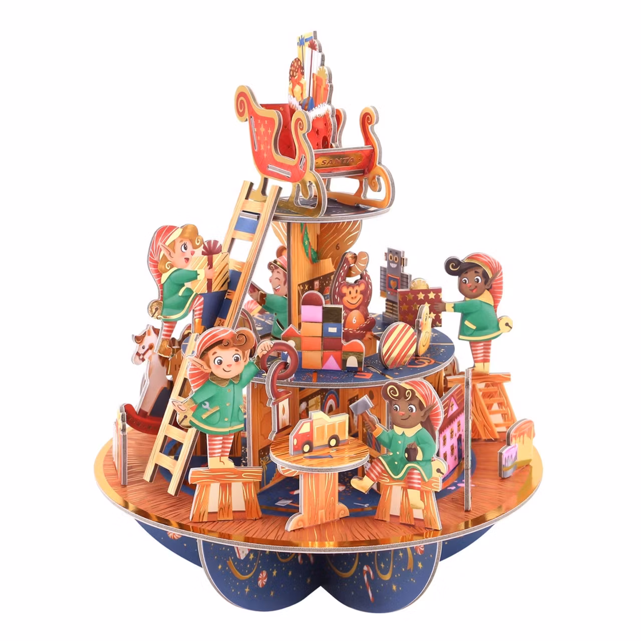 Underbart adventskalender där ni tillsammans sätter ihop fabriken där alverna tillverkar alla leksakerna inför julen.