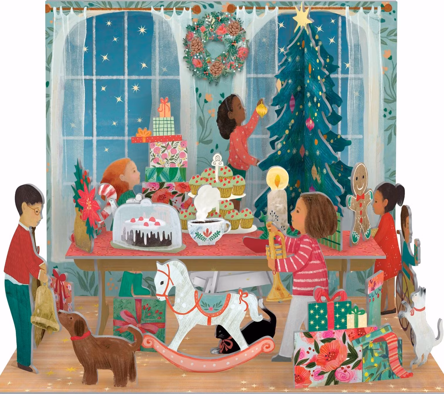 Innehåller ark med tryck-ut delar som är numrerade, en del för varje dag fram till julafton.