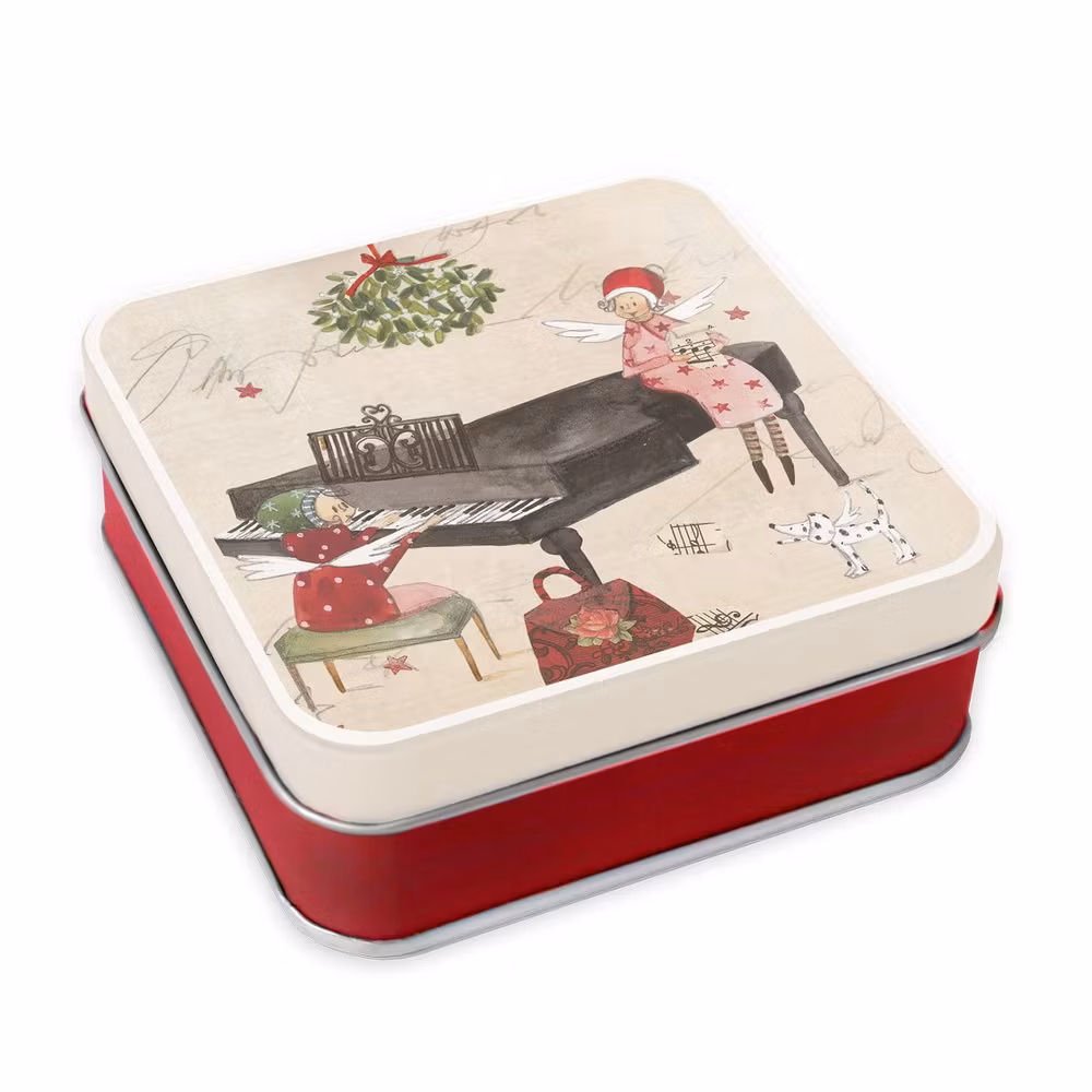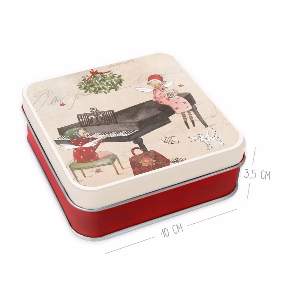 Den fyrkantiga plåtburk är designad av Silke Leffler.