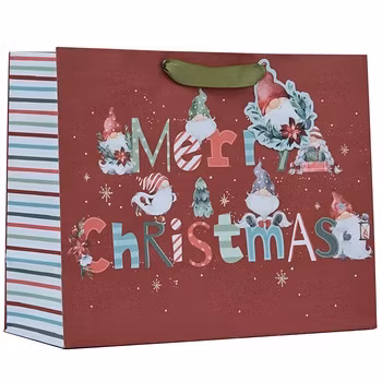En härlig påse som du kan lägga dina presenter i. Antingen lägger du bara lite silkespapper löst över dina gåvor och lämnar över dem i den fina påsen eller också slår du in dem med fint papper och band och lämnar över allt samlat i påsen.