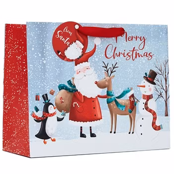 En härlig påse som du kan lägga dina presenter i. Antingen lägger du bara lite silkespapper löst över dina gåvor och lämnar över dem i den fina påsen eller också slår du in dem med fint papper och band och lämnar över allt samlat i påsen.