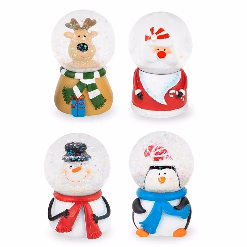 Små snöglober - Välj vilken du vill ha 89 kr Här finns fina snöglober i fyra olika varianterVänder du på den så svirlar snön runt huvudet på dem.Material: Glaskula fylld med vatten. Lägg i korgen %Snöglob Tomte Snöglob Ren Snöglob Pingvin Snöglob Snögubbe Snöglob Lägg i korgen Dela Här finns fina snöglober i fyra olika varianterVänder du på den så svirlar snön runt huvudet på dem.Material: Glaskula fylld med vattenFinns i 4 olika varianter: Ren, snögubbe, pingvin, JultomtenVälj själv vilken du vill ha.Mått: 7,2 x 4,5 cm