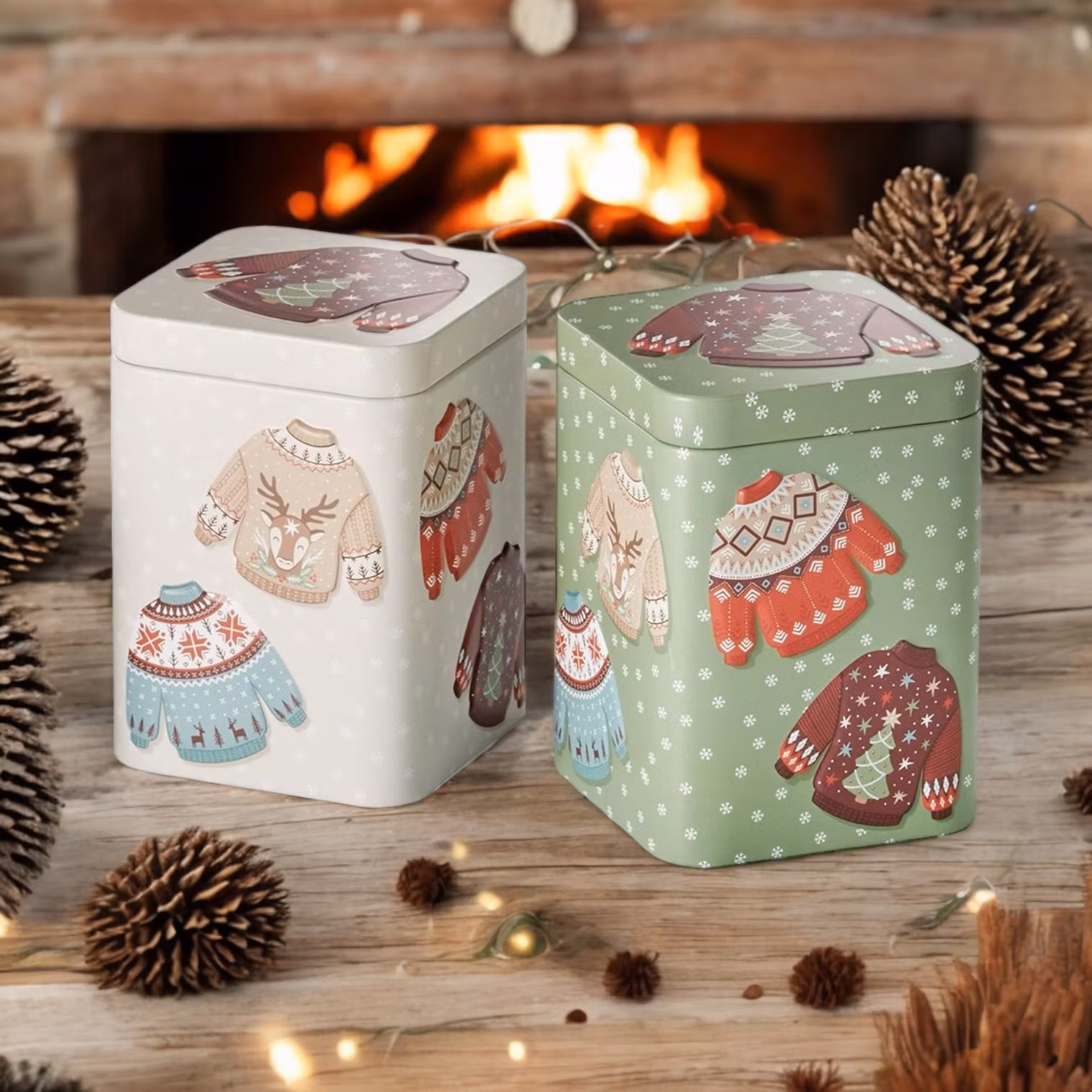 En helt magiskt fin plåtburk med de fina, varma tröjorna.