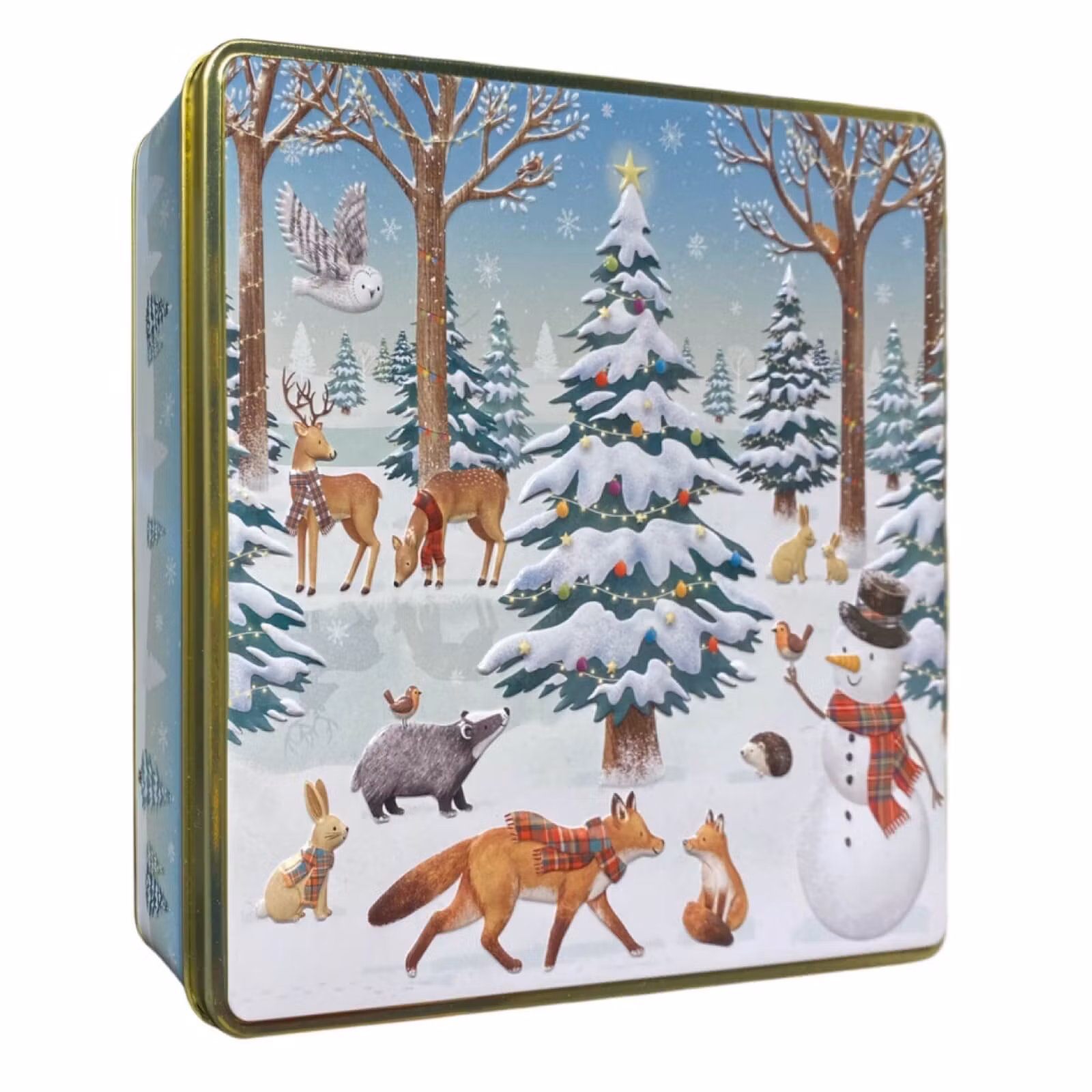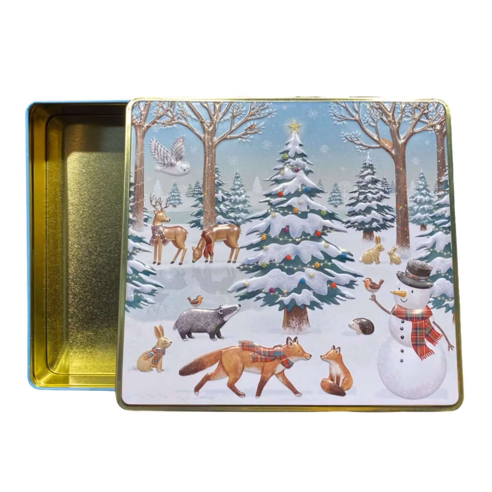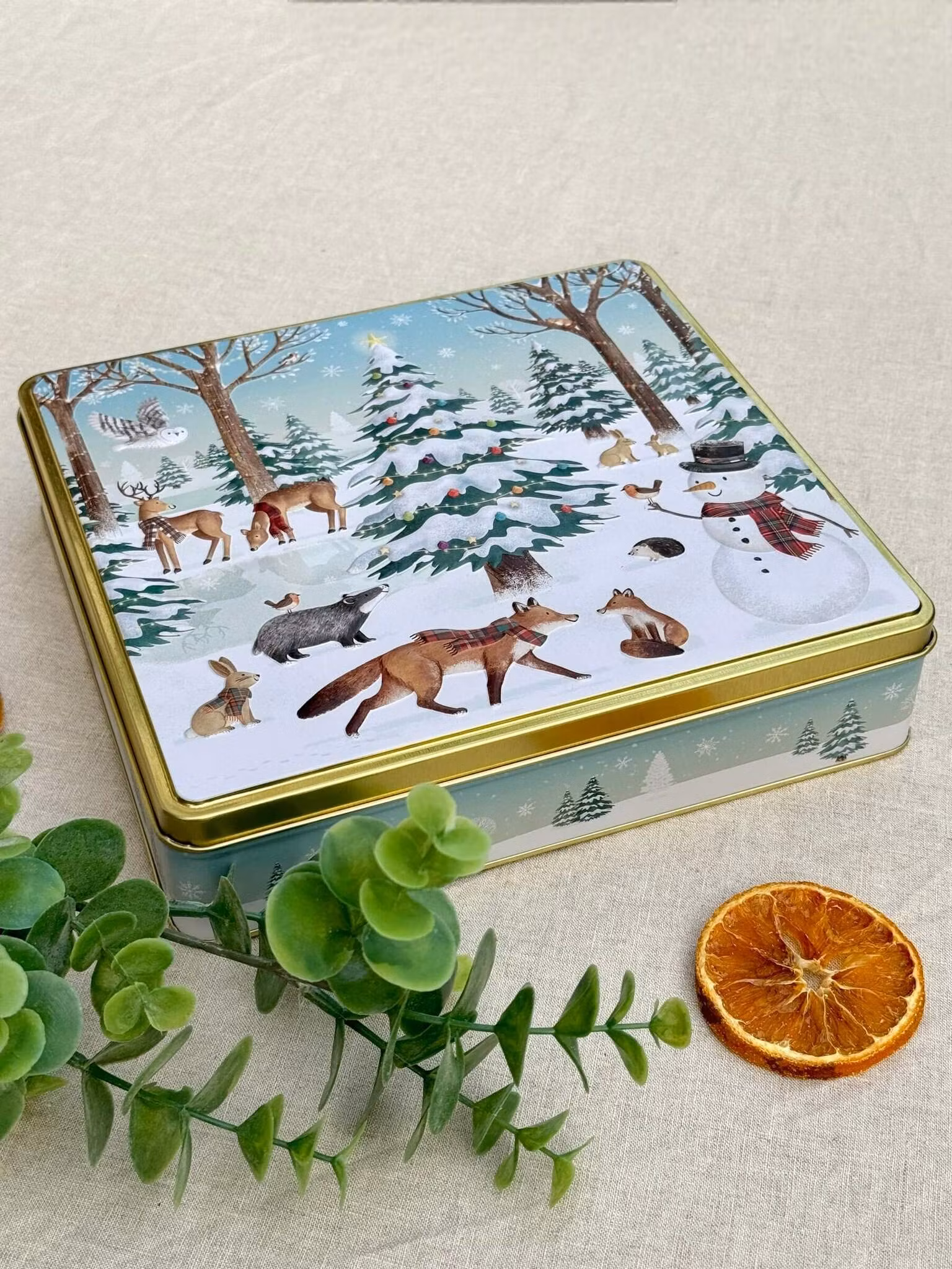 En helt magiskt fin plåtburk med djuren som strosar omkring i skogen.