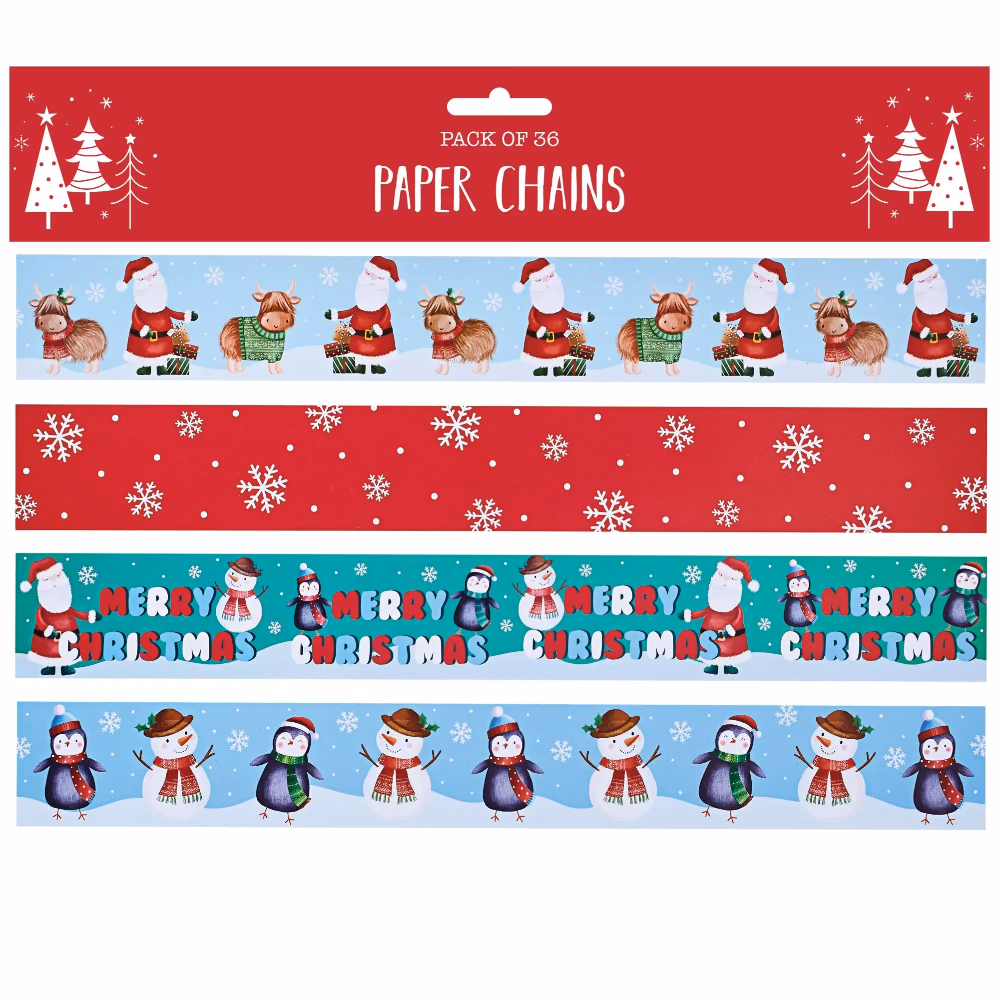 Förpackningen innehåller 36 pappersremsor som du lätt skapar öglor av och binder ihop till en kedja.