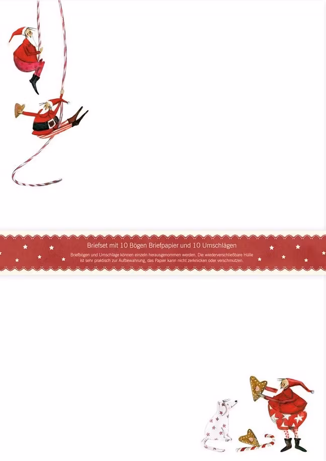 Här finns 10 ark brevpapper, 10 röda kuvert som du kan använda för att skriva brev till dina släktingar och vännner. Perfekt för att skriva din önskelista.