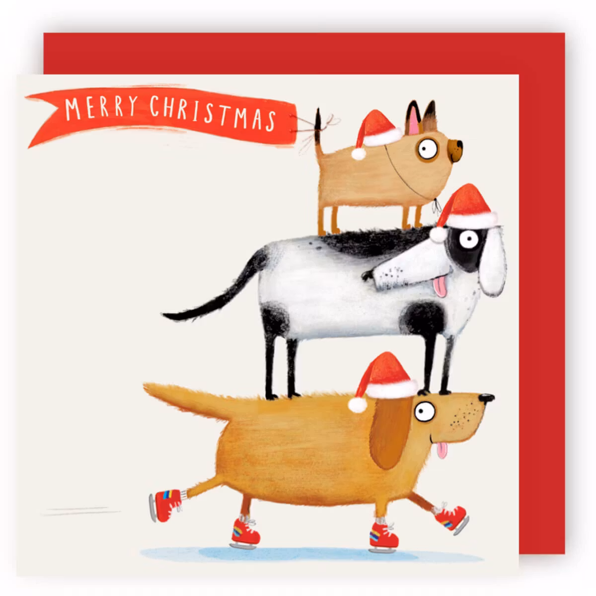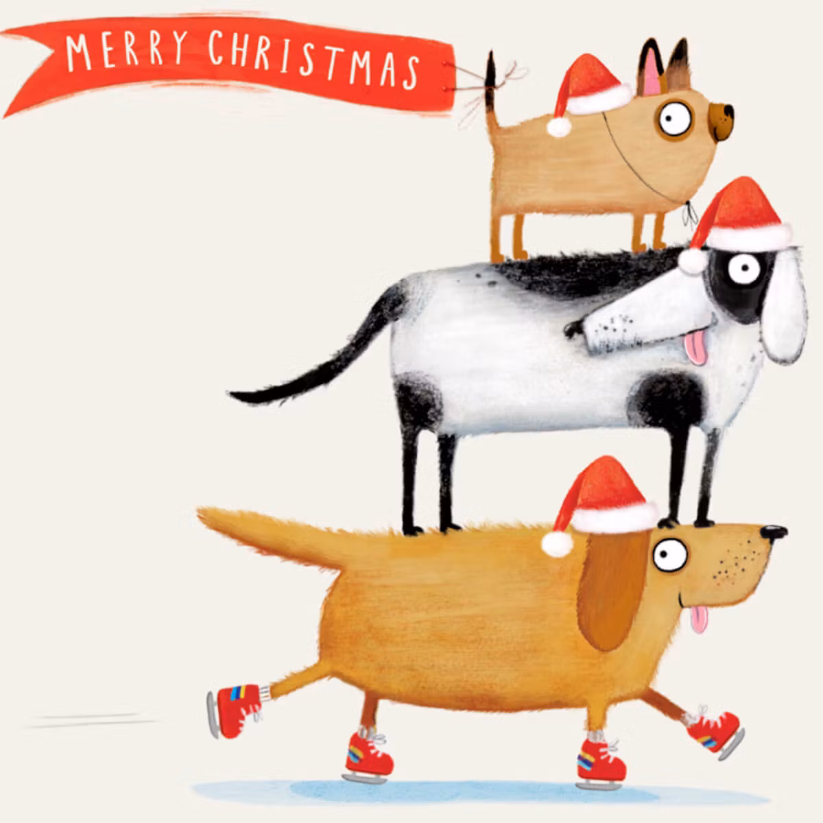 Underbart härligt julkort med hundarna som åker skridskor tillsammans. Om man bara har tillgång till ett par skridskor så får man vara lösningsorienterad för att få det att fungera.