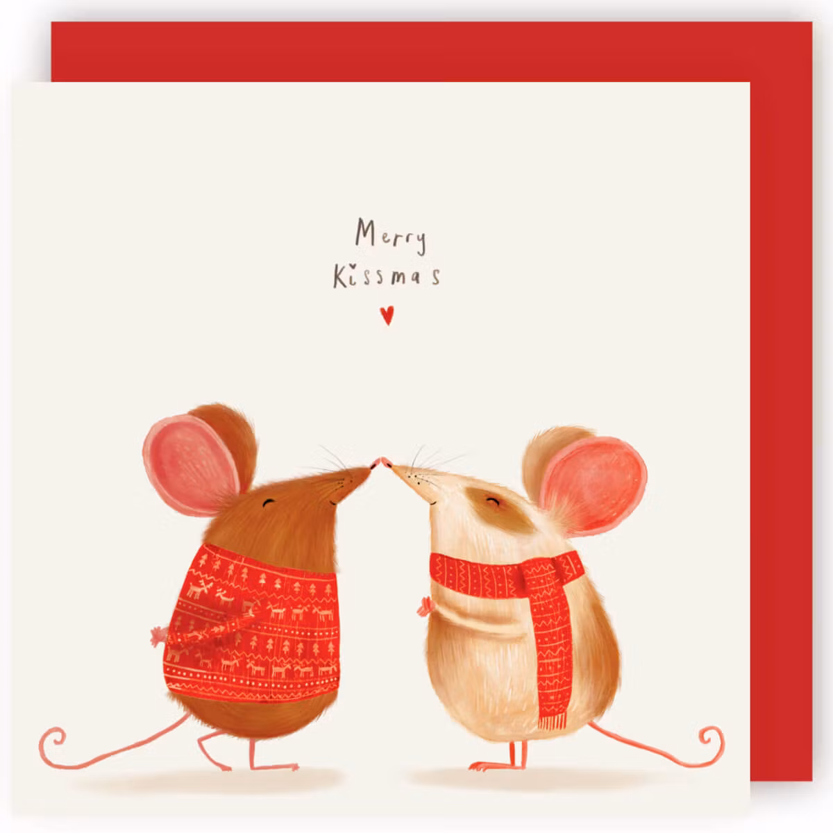 Underbart härligt julkort med de söta, julklädda mössen, nos mot nos.