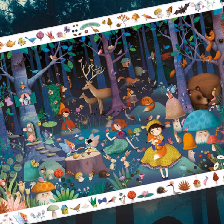 Ett så fint 100-bitars pussel med motiv från sagoskogen. Underbart detaljerat motiv med ram runt av små detaljer från huvudmotivet. Kan du hitta allt?