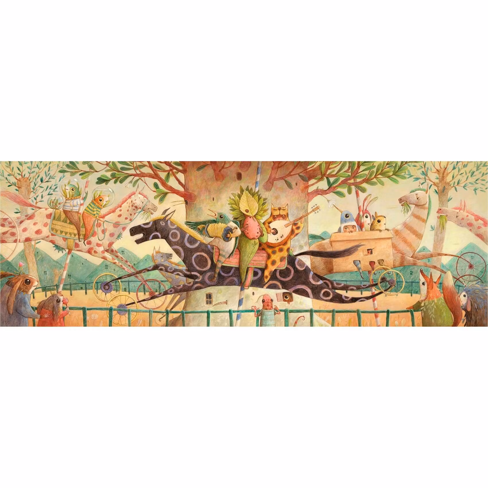 Motivet är hämtat från en fantasivärld där en glad skara djurfigurer (och barn i djurdräkter) spelar musik och njuter av en tur på en förtrollad karusell.