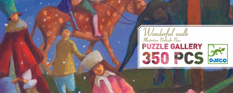 Vackert och konstfärdigt illustrerat pussel där motivet är en promenad. Det bästa med promenaden är att den kan göras på så många olika platser; genom skogen, över havet, på en dammig landsväg, och i din egen fantasi. Njut av att lägga detta fina pussel före, efter eller under promenaden!