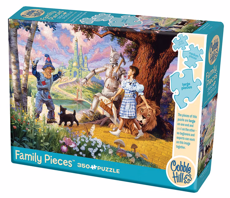 Jättefint pussel med gänget från Trollkarlen från Oz. Pusslet är inte riktigt som ett vanligt pussel. Bitarna är nämligen olika stora och det gör att alla