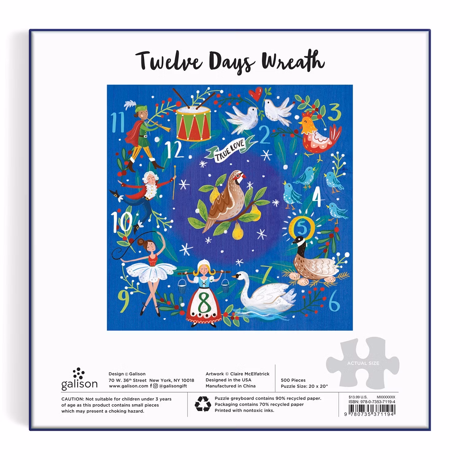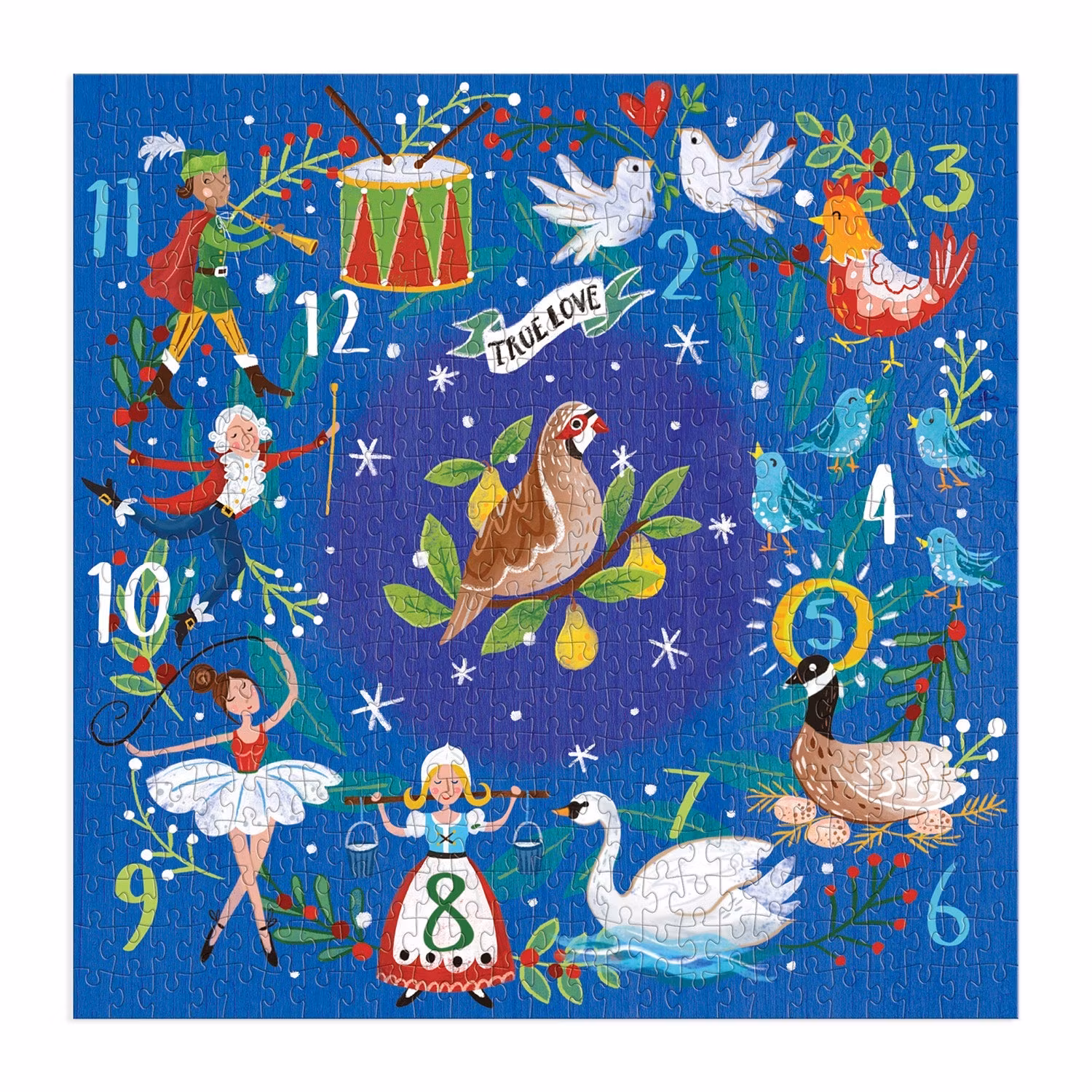Three French hens, two turtle doves and a partridge in a pear tree" osv.