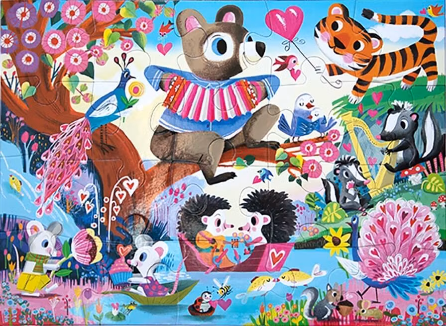 Underbart pussel med motiv av djuren som tycker så mycket om varandra. Stora, härliga bitar, som är lätta för en liten hand att hålla i.