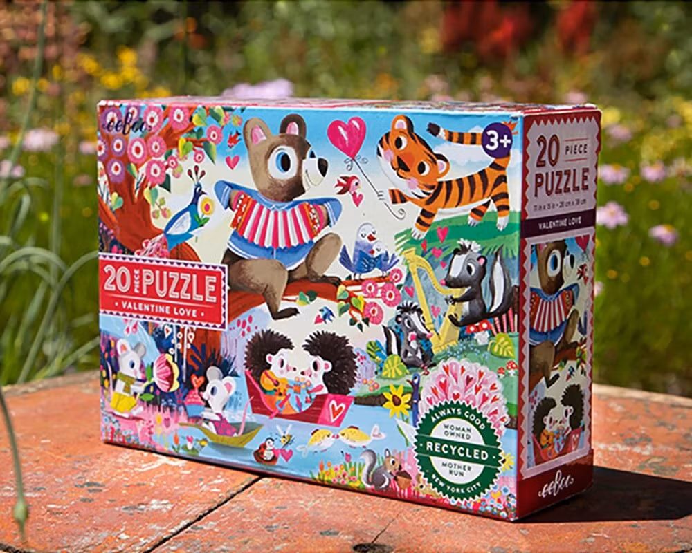 eeBoo designar och tillverkar underbart vackra och välgjorda pysselsaker, leksaker, pussel och spel. Designen är ofta hämtade från olika barnboksilllustrationer. Produkterna fokuserar på historieberättande, fantasilek, pyssel och pedagogik. Många av sakerna har vunnit pris.