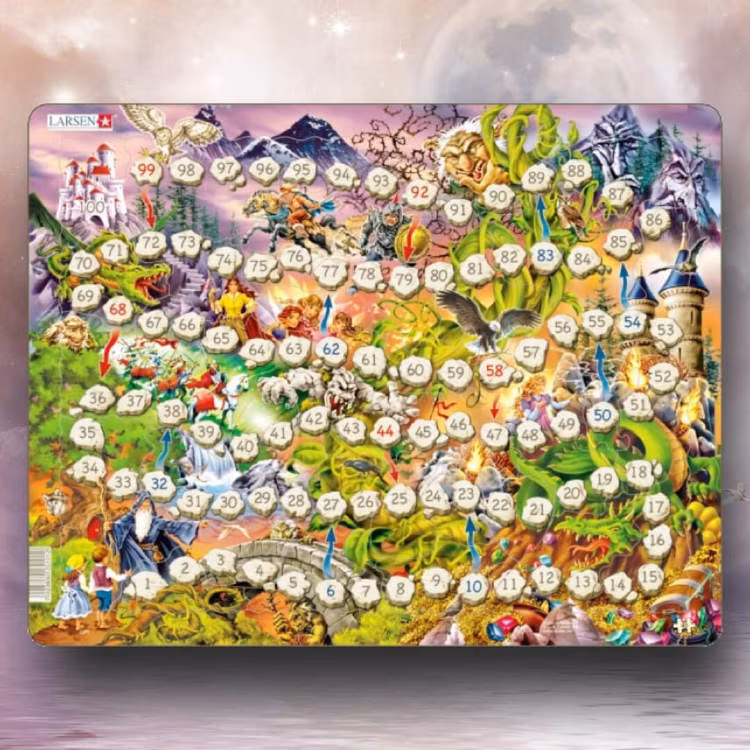 Två i ett! Bygg ihop pusslet och plocka sen fram en tärning och någonting som kan fungera som spelpjäser. Du har nu ett spel som du kan spela tills du känner för att bygga ditt pussel igen. Du bygger pusslet i en ram så det ligger helt stilla när du använder det som spel. I och med att det ligger i en ram tar det mycket mindre plats vid förvaring eftersom det inte kommer i någon stor låda.