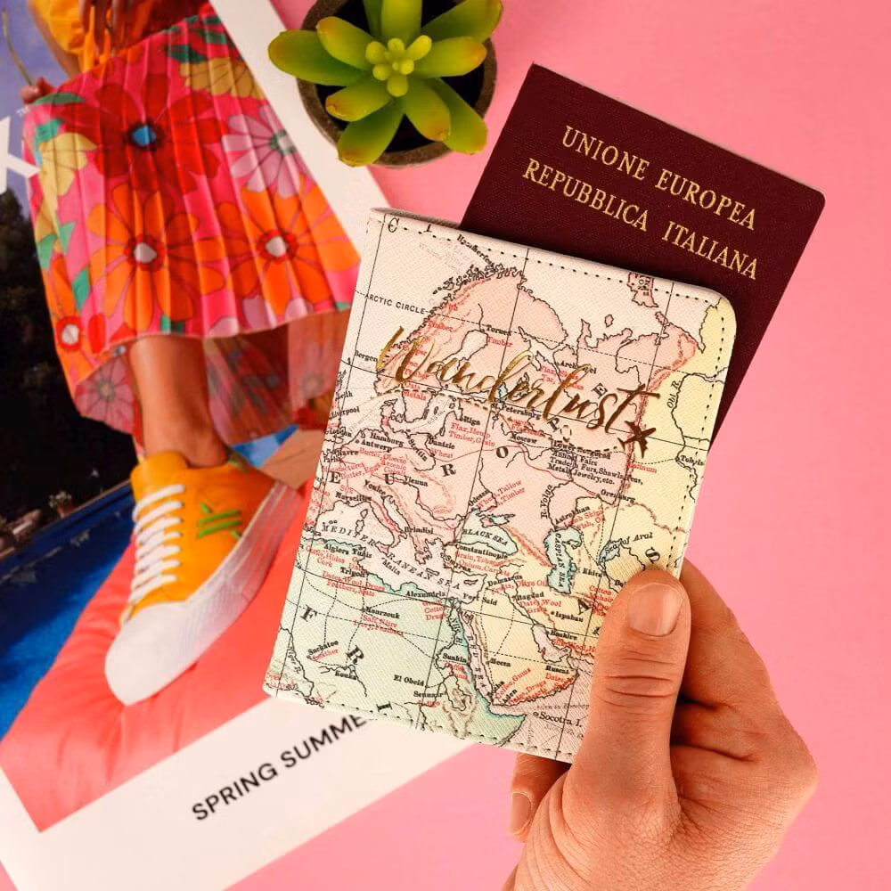 Här finns ett fint fodral för att skydda ditt pass. I fodralet finns det även fyra fack för kreditkort och biljetter.