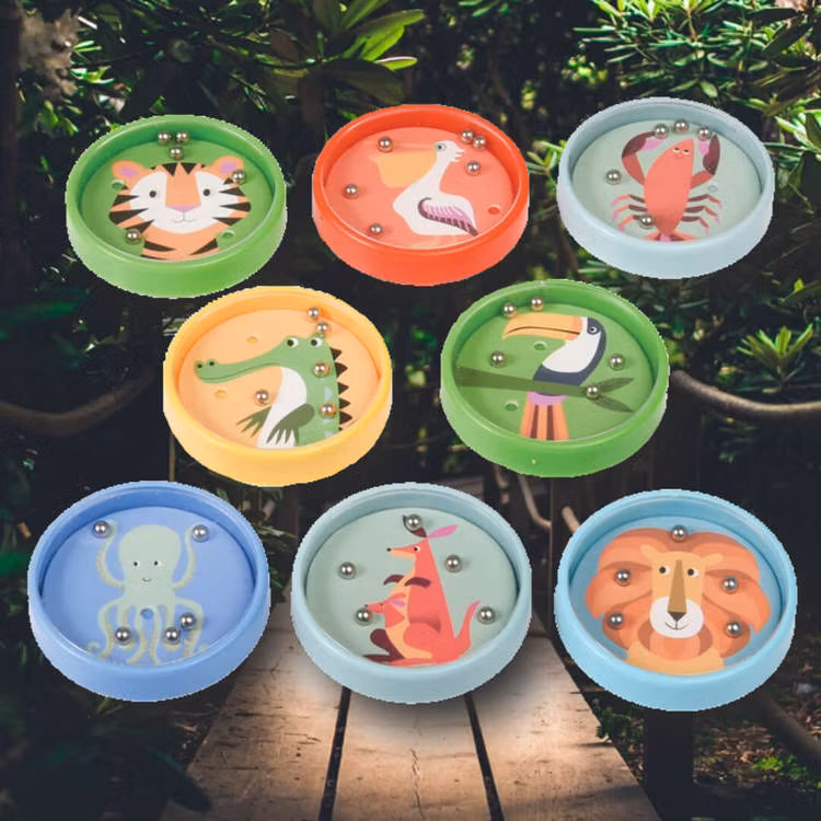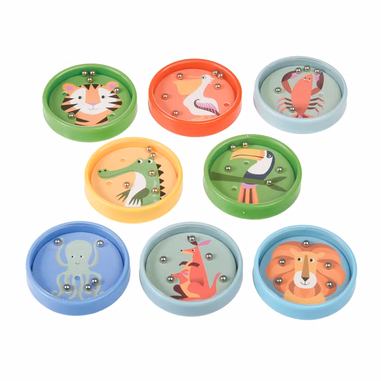 Fina små tålamodsspel med motiv av vilda djur. Försök att få ner alla kulor i hålen. Välj själv vilken variant du vill ha.