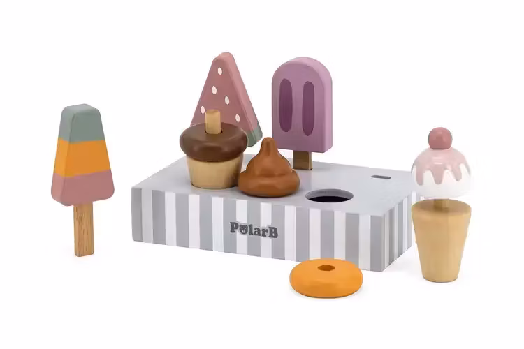 Här finns ett härligt glass-set i trä. Här finns 5 stycken olika smarriga glassar.