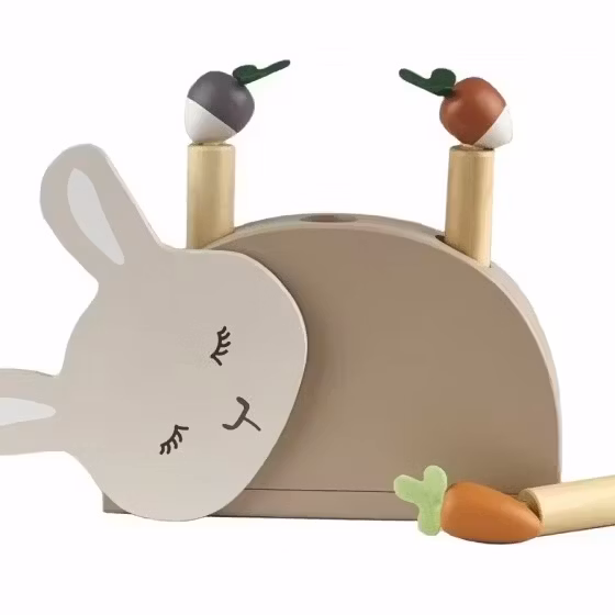 Kaninen tar en liten tupplur efter att ha ätit massa grönsaker. Tryck på grönsakerna, släpp taget och försök fånga dem.