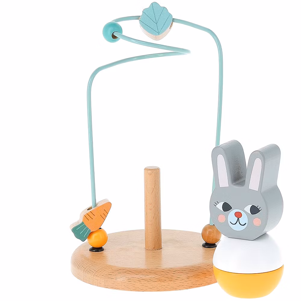 En underbar leksak för små barn. Morotsbanan är vackert designad och blir en fin prydnad när den inte används.