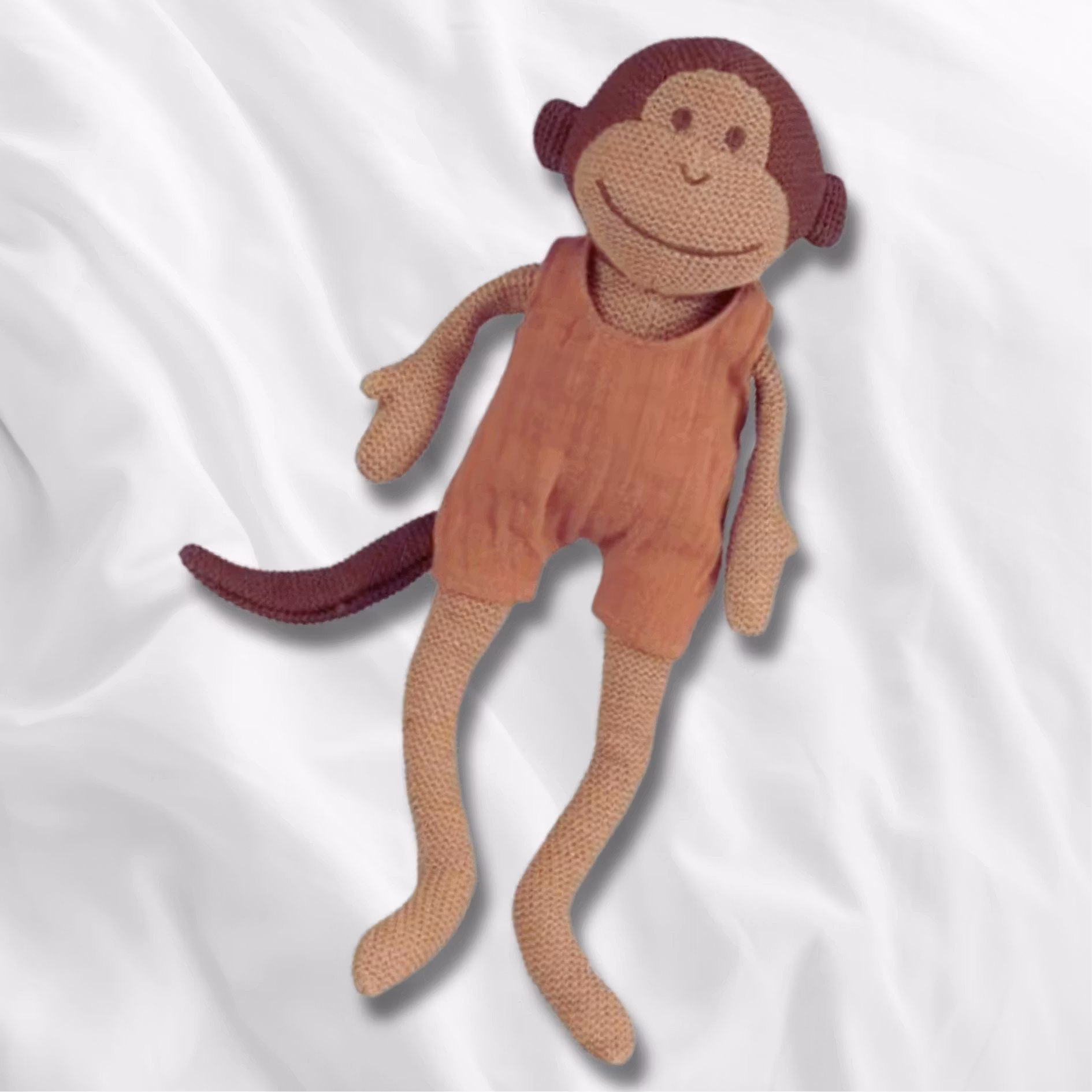 Underbar och kramgo stickad apa i bomull. Apan Paulo har linnekläder i härliga naturfärger. Med sin långa svans, ben och armar är Paulo en vän i vått och torrt. Paulo har även en skallra inuti som gör honom extra härlig. Ett perfekt gosedjur för alla åldrar!