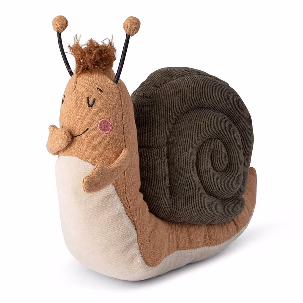 Den blyga snigeln Sandy vill gärna vara med på allt roligt som händer. Material: Bomull och linne med 100% återvunnen polyesterfyllning. Passar bra från 3 år.