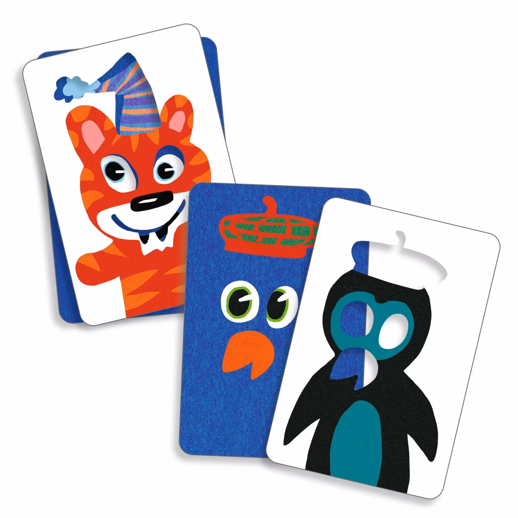 Ett kul spel där du matchar ansikten med djur genom att gissa vilket detaljkort som hör ihop med kortet med hålen.