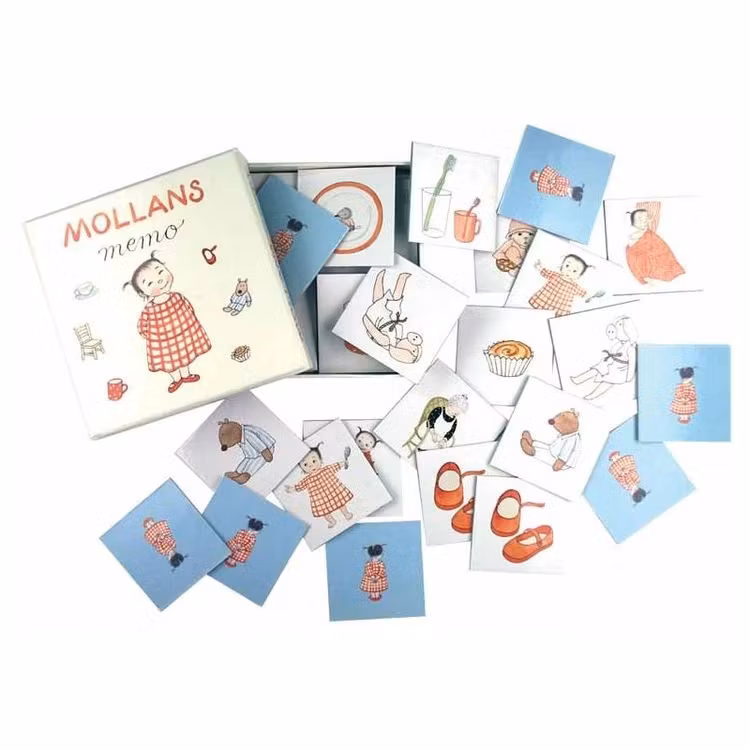 Vänd alla korten upp och ner på bordet. Den som börjar vänder på två kort så att bilderna syns. Om det är samma bild på båda korten får spelaren behålla dem, annars vänds korten ned igen och det är nästa spelares tur. Den som har flest par när alla korten på bordet är borta, vinner.