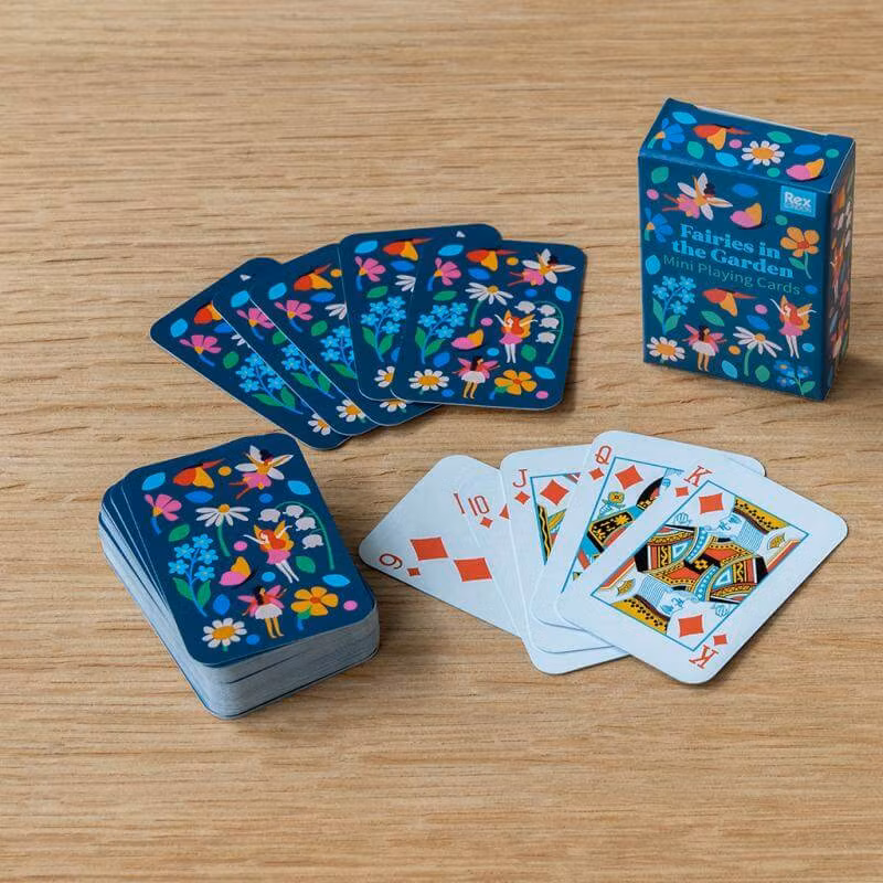 Här finns en liten, klassisk kortlek med blomsterälvor, istället för de vanliga kungarna och drottningarna.