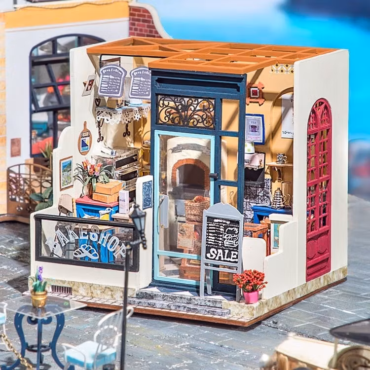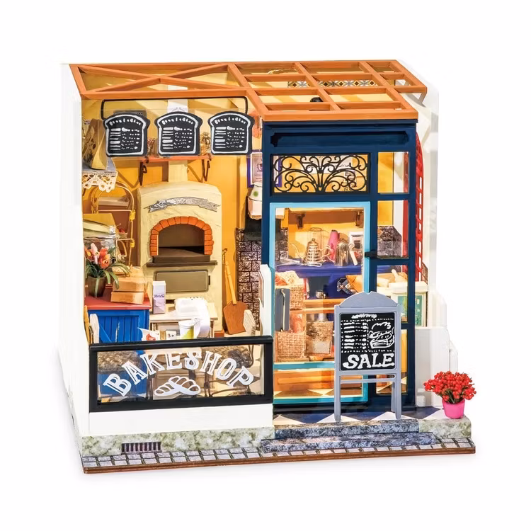 För de riktiga pysslarna är Robotime Mini -husen väldigt roliga med sina otroliga detaljer. De har till och med LED -belysning. Här har ni bageriet.