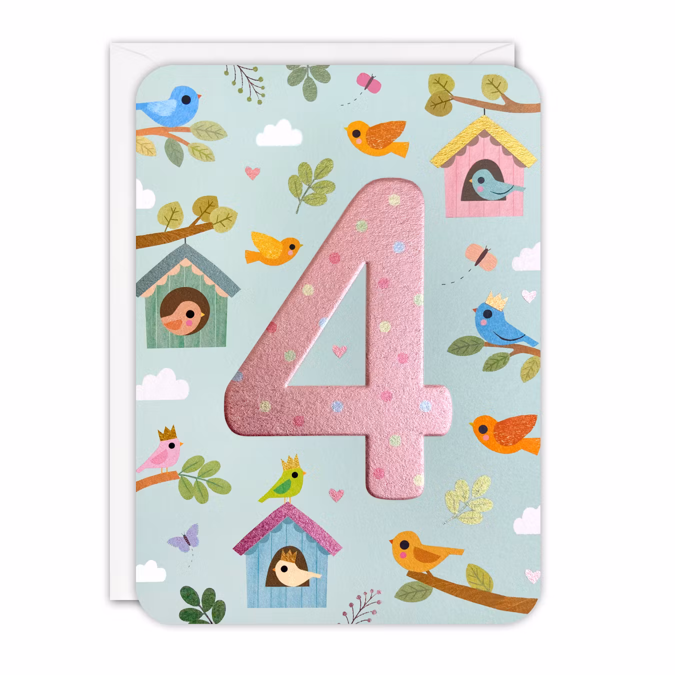 Fint kort med kuvert som passar någon liten som fyller 4 år.