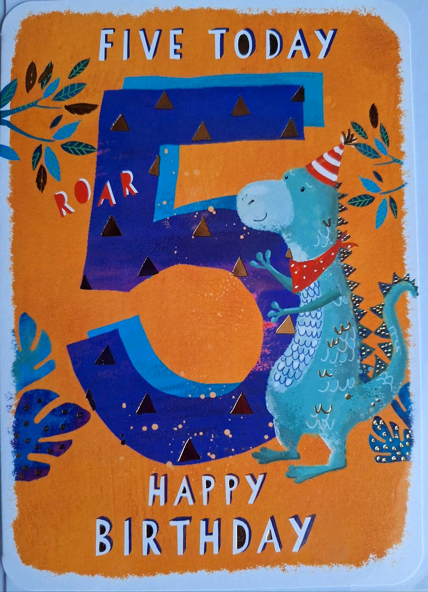 På kortet finns texten ”Five today 5 Happy Birthday”.