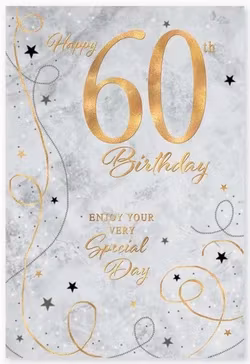Här finns stjärnor och texten "Happy 60th Birthday. Enjoy your very Special Day".