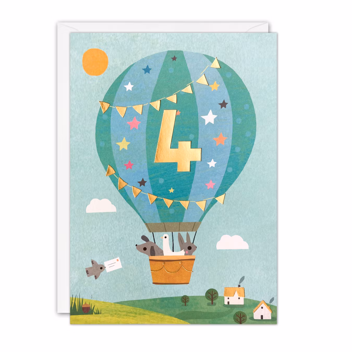 Fint kort med kuvert som passar någon liten som fyller 4 år.