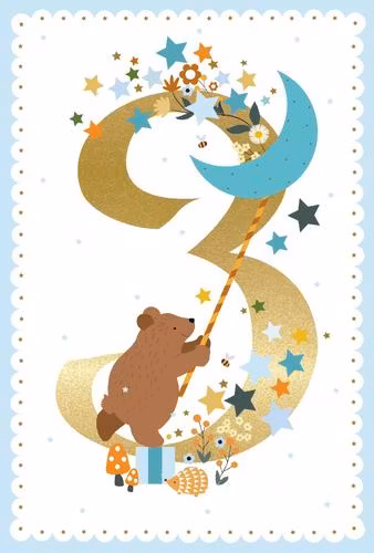 I kortet finns texten "Wishing you a great 3st Birthday".