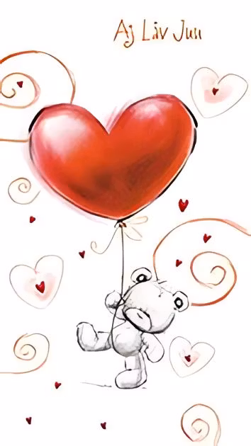Gulligt kort med den söta nallen som håller i en STOR hjärtformad ballong.
